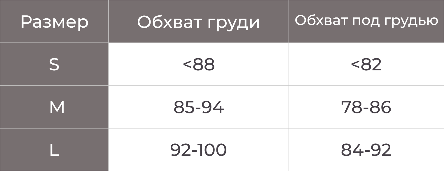 У модели на фото: грудь 81см, под грдью 77см — носит размер S